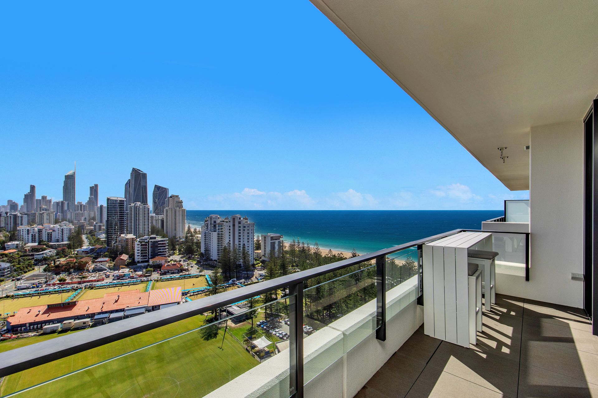 2 bedroom apartment. 100M to the beach. Overlooking the Broadbeach Bowls Club. Stunning ocean views.