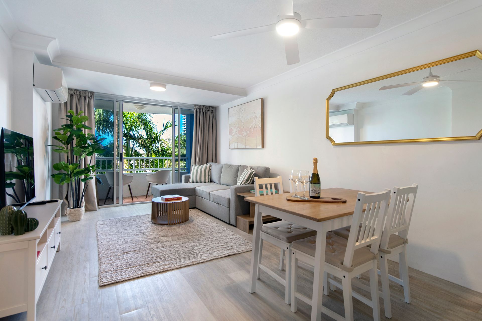 Discover a golden getaway at Bel Air Modern, a magnificent 1Bedroom Apartment nestled in the heart of Broadbeach, QLD. This sumptuous holiday rental can comfortably host up to 4 guests, making it a perfect retreat for romantic getaways or a small family vacation. Patio doors flood the room with natural light, leading out to a furnished balcony where you can feast your eyes on captivating views of Broadbeach and the communal swimming pool.