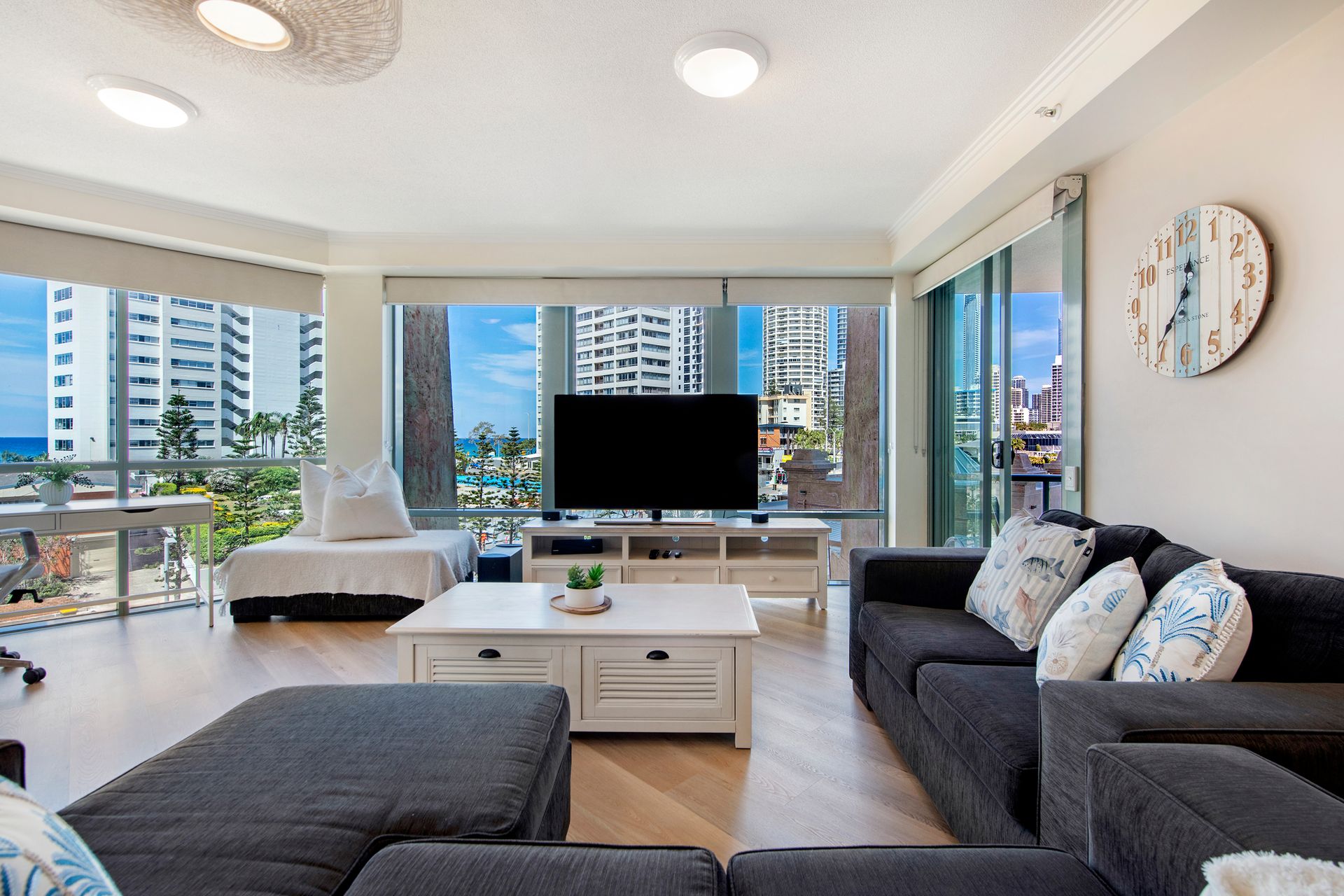 Perfectly positioned just moments from the sand and surf, Family Fun at Sun City offers everything you need for a relaxed and memorable Gold Coast getaway. With a spacious living area, three comfortable bedrooms, and unbeatable views, it's designed with families in mind. Enjoy the convenience of a fully equipped kitchen, resort-style pools, on-site restaurant and kid-friendly facilities – all within a short walk to the beach, shops, and local attractions. Whether you're building sandcastles, exploring Surfers Paradise, or unwinding on the balcony, this apartment is your home away from home.
