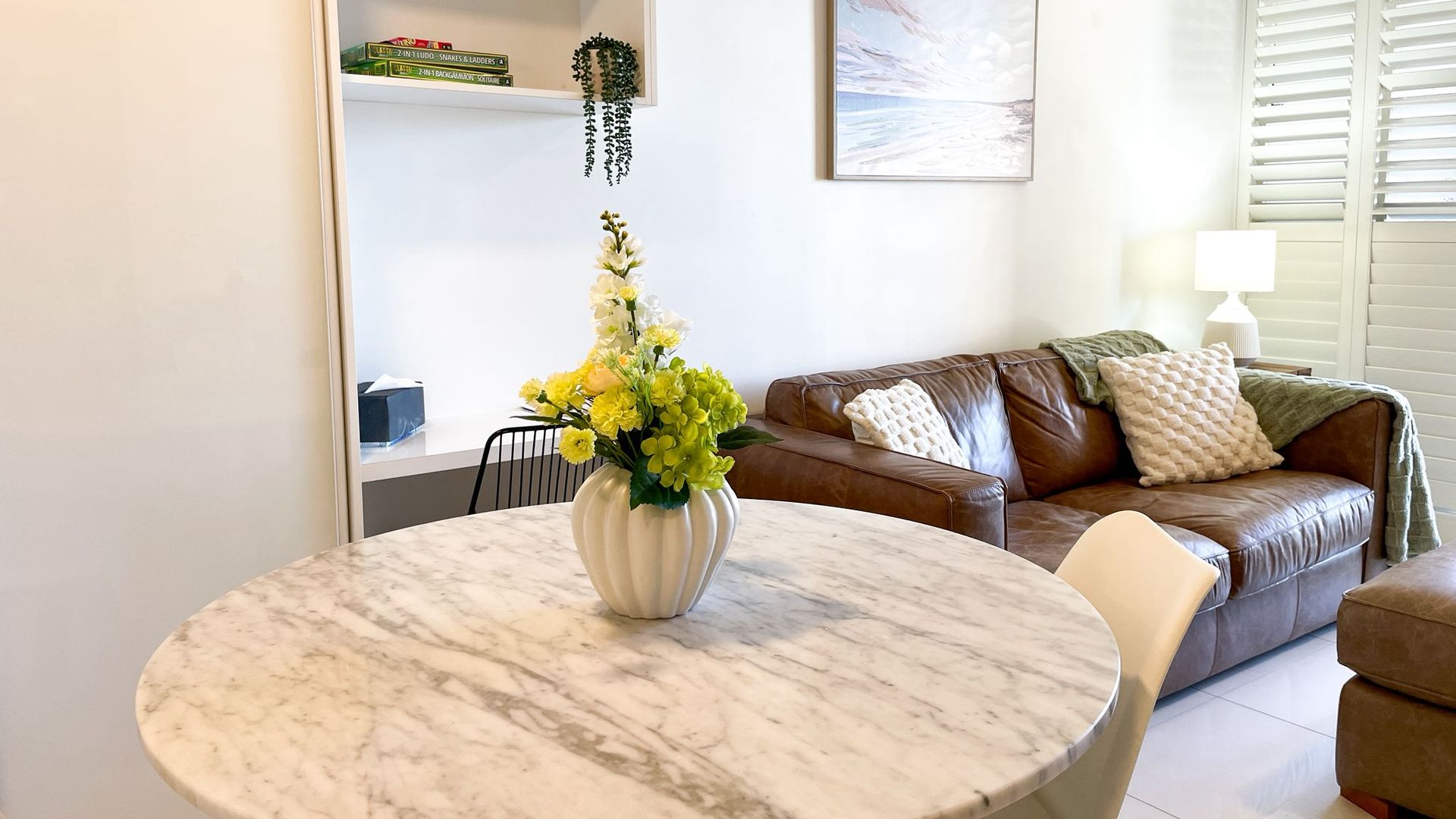 Welcome to our stylish 1 bedroom apartment in Surfers Paradise. This cozy, coastal retreat is perfect for a small group of friends or a family getaway. This apartment features a comfortable queen bed in the bedroom and double sofa bed in the living room, offering flexible sleeping arrangements for up to four guests. You'll enjoy the convenience of an ensuite bathroom with a separate toilet, as well as a fully equipped kitchen—complete with a coffee machine to kick-start your mornings. Step out onto your private balcony to take in the stunning ocean views or look down over the sparkling pool and surrounding gardens. Whether you're planning a relaxing weekend escape or attending a special event, this thoughtfully designed space has everything you need for a memorable stay.